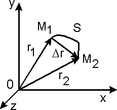 Проведем из точки M1 в точку M2 направленный отрезок Dr. Вектор Dr, соединяющий