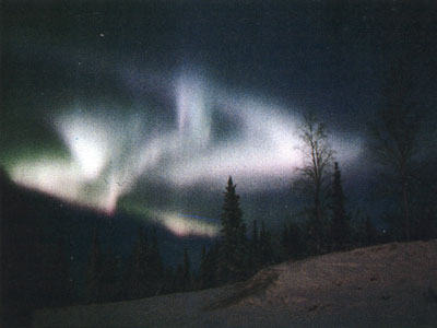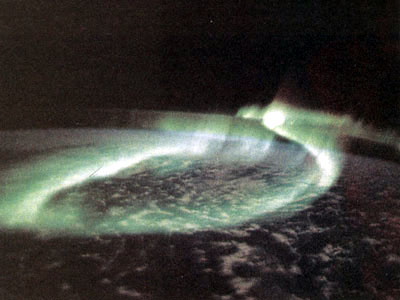 Заряженные частицы, скользя вдоль силовых магнитных линий Земли, могут проникнуть в атмосферу. Сталкиваясь с атомами атмосферы, они вызывают особое свечение, называемое полярным сиянием. |