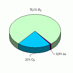 Основные составляющие атмосферы Земли – азот и кислород. Остальные газы: водяной пар, углекислота, неон, метан, водород и другие – составляют около 1 %. Давление атмосферы на уровне моря – 1 атм = 101325 Па = 760 мм рт. ст. |