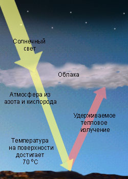 Небольшое количество углекислого газа в земной атмосфере создает парниковый эффект. |
