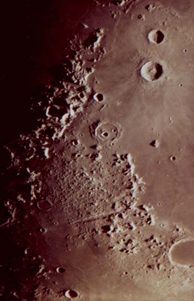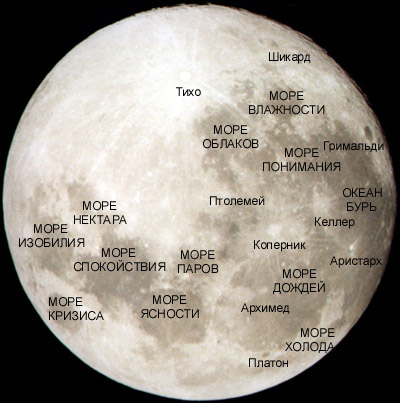 Видимыми даже невооруженным глазом деталями лунного рельефа являются так называемые моря и материки. Вокруг морей часто располагаются горы. Их размеры довольно внушительны: Апеннины имеют максимальную высоту 6 км, Карпаты – 2 км. |