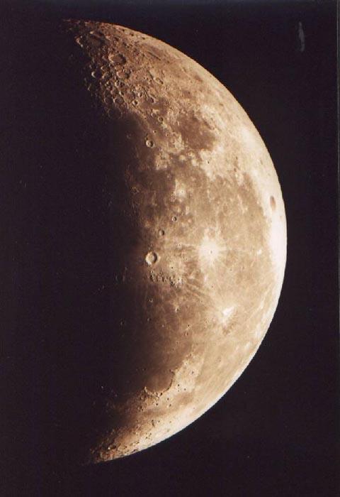 При наблюдении в телескоп становится ясно, что моря и материки усыпаны кратерами. Особенно выделяются кратер Коперник и кратер Тихо с расходящимися от него почти по всей поверхности Луны белыми лучами. На видимой стороне Луны количество кратеров, диаметр которых больше 1 км, около 300 000. |
