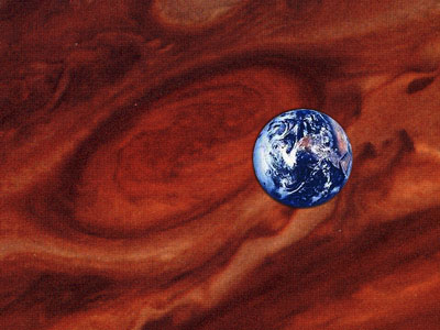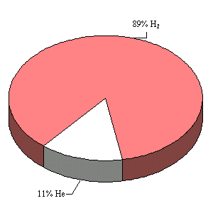| Атмосфера Юпитера состоит на 89 % из водорода и на 11 % гелия и напоминает по химическому составу Солнце. Ее протяженность 6 тысяч километров. Оранжевый цвет атмосфере придают соединения фосфора или серы. Для людей она губительна, так как содержит ядовитый аммиак и ацетилен. | ||